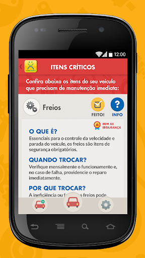 As recomendações sugeridas tem como base a norma ABNT e os manuais dos fabricantes. Sempre que houver novas recomendações de manutenção, o usuário será notificado. A confirmação das recomendações sugeridas deverá ser feita por um profissional, na oficina mecânica de sua confiança. Carro 100% Check-up. O amigo virtual do seu veículo.