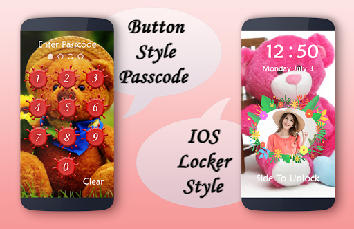 in this app you also set your name with your photo. teddy bear DIY Lock Screen is application to protect your smartphone through using pin/passcode or pattern, no one can enter into your phone without correct four digit password or current pattern.