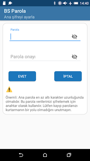 Ayarladığınız ana şifre, verilerinizi şifrelemek için şifreleme anahtarı olarak kullanılır. Ana şifrenizi değiştirdiğinizde, veritabanı şifreleme anahtarınız da değiştirilir. Parolanızı değiştirmeden önce, eğer bir veritabanı yedeğiniz varsa, o zaman aktif veritabanından farklı olacaktır, bu yüzden verilerinizi bu dosyayı kullanarak geri yüklemek istiyorsanız, yedek anahtarını girmeniz istenecektir. İki ayrı şifre tutmaktan kaçınmak için, Ayarlar menüsünden otomatik yedeklemeyi etkinleştirmenizi öneririz. Otomatik yedekleme özelliği, yedekleme ve aktif veritabanı anahtarlarında tutarlılık sağlar. Bunu, yeni bir yedekleme dosyası oluşturarak yapar. Alternatif olarak, şifre değiştikten sonra manuel olarak yedek oluşturabilirsiniz. Veya geri yükleme işlemi sırasında ilgili ana şifreyi girmeniz gerekecektir.