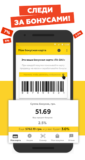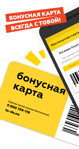 TA-DA uygulamasını indirin! Ve ilk% 2,5 indirim ve birikim olasılığı olan bir bonus kartı alın.