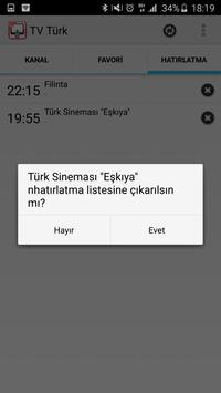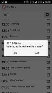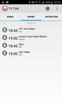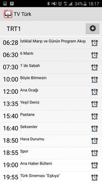 TV Türk uygulaması ile günlük olarak Türkiye televizyon kanallarının yayın akışına erişebilir, kanallara ait anlık yayın akışını rahatlıkla görebilirsiniz, favori liste oluşturabilir, gün içinde istediğiniz program için alarm kurabilirsiniz.