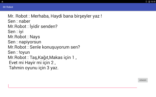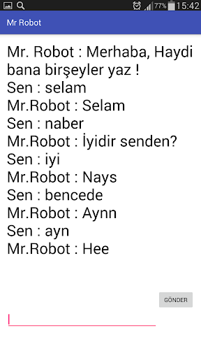 Mr Robot ile internetinizin olmadağı zamanlarda bile konuşabilirsiniz.Her zaman size cevap verir.