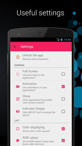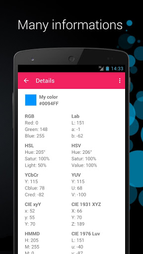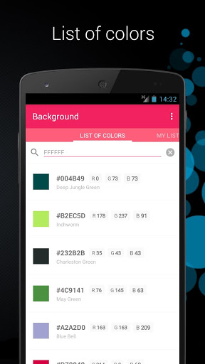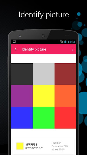 This application lets you select a color from the list, mix, set as wallpaper, identified by camera and more.