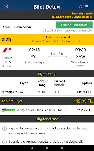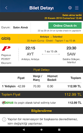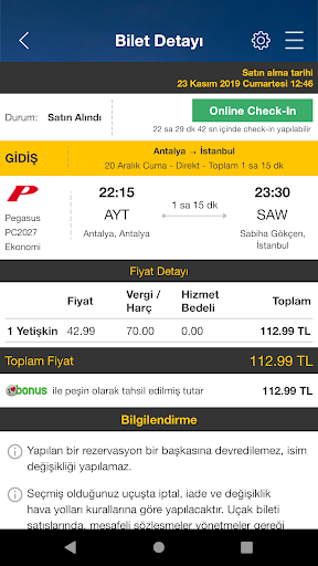 - Online bilet iptal özelliği ile uygulama üzerinden bilet iptali