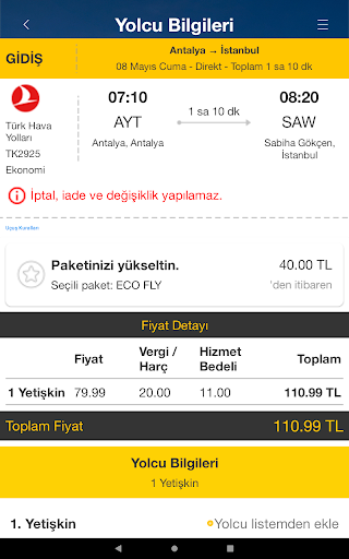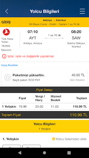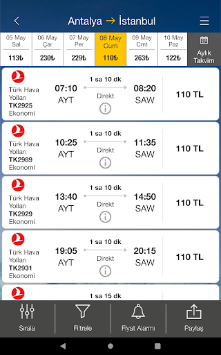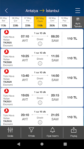 - Farklı hava yollarının sefer ve fiyatlarını tek ekranda karşılaştırma