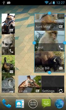 A Customizable, resizable, scrollable contact widget. You can add any of your contacts to the widget and they are laid out in a tiled display which you can arrange and order in any way you choose.