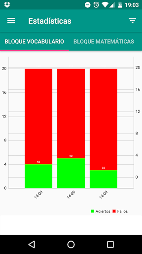 Podrás ver las preguntas que has fallado y observar tu evolución en el estudio gracias a los gráficos que incorpora.