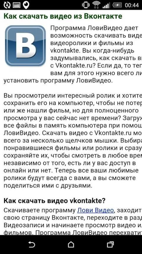 The program download any audio and video content to your phone from social networks will be a pleasant pastime. You need to perform a few simple steps - download the app and install it on your smartphone. All. In the future, you do not even have to run it, the program integrates with your web browser and is self-activated at the right moment to download videos from the contact.