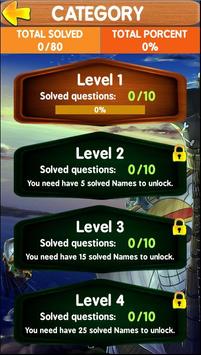 Anime karakteri sanırım hikayede popüler çeşitli One Piece karakterlerin isimlerini tahmin etmeye çalışarak tüm bilginizi göstermek zorunda olacak sorular ve cevaplar eğlenceli ve büyüleyici bir oyun