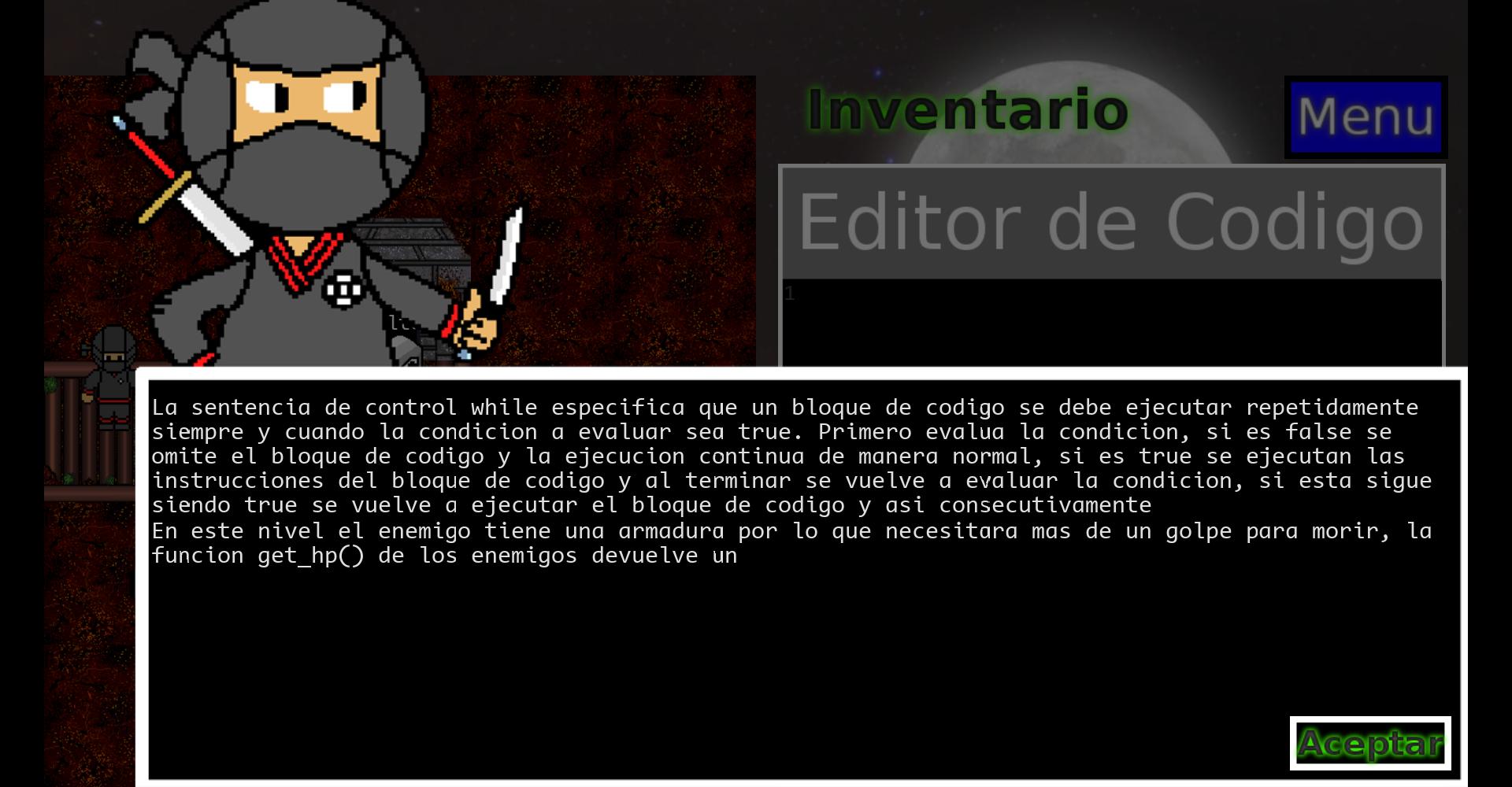 Videojuego para aprender a programar mientras te diviertes jugando.