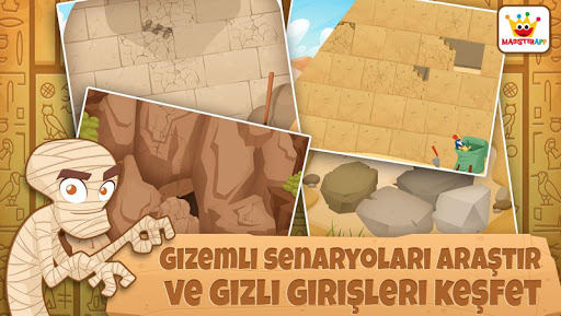 Tüm çocuklar, piramitlerin içinde saklanan tüm ipuçlarını ve hazineleri bulmak için, gerçek bir arkeolog gibi gizli odalara giriş ararken ve sonra kazarken eğlenecekler.