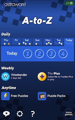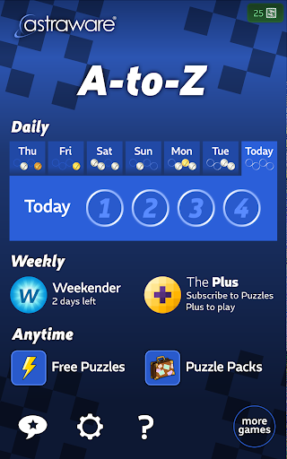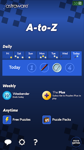 Astraware A-TO-Z, ücretsiz günlük bulmacalarımızı oynamaya erişmenizi sağlar - bulmacayı tamamlayarak küresel lider En hızlı zaman! Ekstra bir meydan okuma için, her Cuma günü daha doğru bir şebeke ve daha sıradışı bir sözcükle mevcut bir hafta içi bulmaca var.