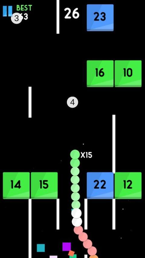 In Balls vs Blocks you can Swipe your finger to guide a snake of colorful balls and break the blocks.