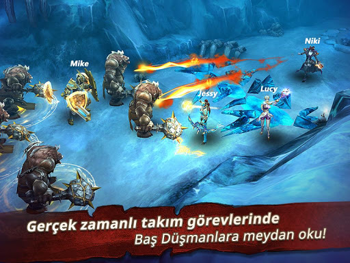 Epik takım baş düşman savaşları için diğer oyuncularla güçlere katıl