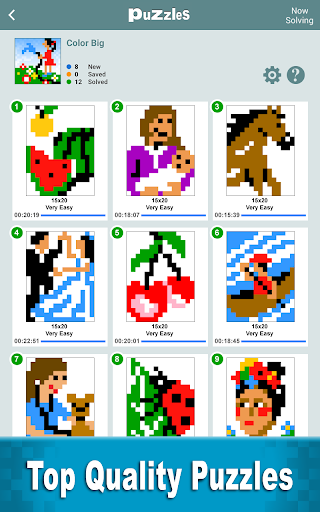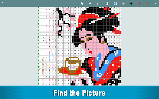 Bulmacayı çözerken kareler boyayın ve güzel bir piksel sanat resmini keşfedin! Her bulmaca, her satırın solundaki ve her sütunun üstünde ipuçları olan boş bir ızgaradan oluşur. Nesne, her satırda ve sütundaki bloklar boyama blokları ile gizli bir resim ortaya çıkarmaktır, böylece uzunluk ve dizileri ipuçlarına karşılık gelir.