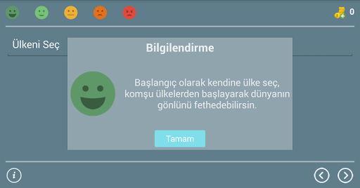 Başlangıçta kendinize ülke seçin, komşu ülkeden başlayarak ülkelerin gönlünü fethetmeye başlayın. Seviye1'den başlayarak ülke fethettikçe Seviye5'e kadar yükselebilirsiniz. Seviye arttıkça oyun biraz daha zorlaşacaktır yani daha fazla beceriye ve şansa ihtiyacınız var demektir. Seviye5 en zor seviyedir ve bu seviyede ülkelerin fethedilmesi kolay olmayacak, uygulama içi coin satın almanız yada reklam izleyerek coinlerinizi arttırmanız gerekir.