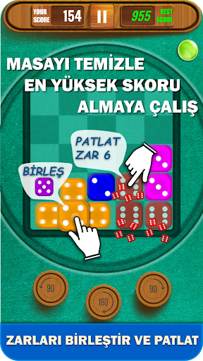 • Tüm zarları 6'ya kadar birleştirin, zar 6'ları patlatın ve tahtayı temizleyin.