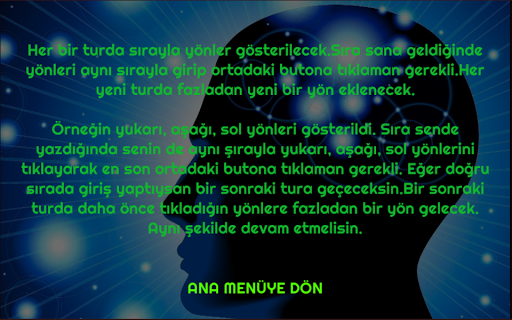 Karşına çıkan yönleri takip et. Her turda daha da zorlaşan seviyelere karşı hafızanı zorla. Başlangıçta kolay gelecek ancak ilerledikçe ne kadar zorlaştığını göreceksin. Ne kadar ileri gidebileceğini gör. Skorunu arkadaşlarınla karşılaştır.