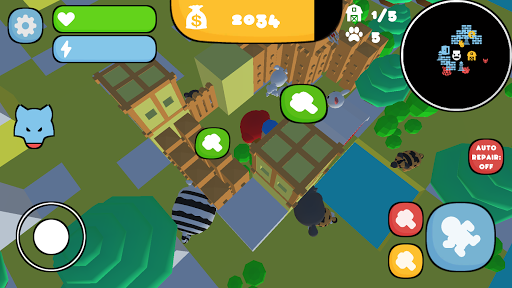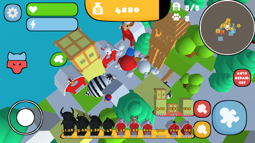 You will survive on the island, hiding from fierce wild animals. Build walls, gates, towers and upgrade these constructions to protect your farm. Build barns to earn gold.