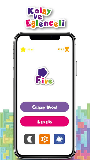 Bu oyun, aynı zamanda kendinize ve arkadaşlarınızla yarışa bileceğiniz hem heyecanlı hem de eğlenceli bir oyun. Five oyununu istediğiniz yerde istediğiniz zaman oynayabilirsiniz. Sizleri birçok yolla eğlendirebilmek adına iki seçenek mevcut. İster "seviyeler" modunu isterseniz de sonsuz tuğla kombinasyonlarından oluşan "çılgın" modunu tercih edebilirsiniz. Sizleri düşündüğümüz bir diğer özellik olan “gece modu”, gözlerinizin rahat etmesini sağlar.