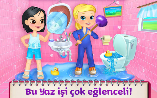 Havuz olmadan yaz olur mu?! Diğer evlerle birlikte havuzları tamir etmek için yaratıcılığını ve tasarım yeteneğini kullanarak mahalleye yazı getirmelerinde Tamirci Kızlara yardım et! Yepyeni ve güzel görünmesi için evdeki her bir odayı temizle, onar ve dekore et! Elektrikli aletleri tamir et, eski mobilyaları değiştir, bir dizi boya arasından seçim yap ve daha fazlasını yap! Tamir ettikçe her bir odaya güzel eklemeler kazan! Birlikte her şeyi tamir edebilirsiniz!