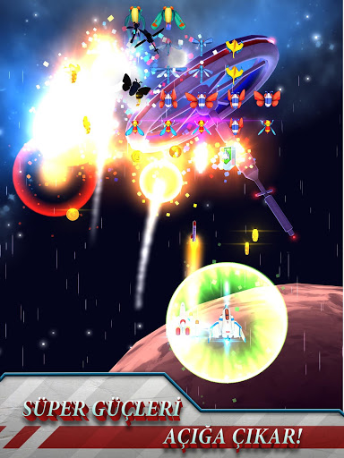 Her gemide lazer, patlayıcı ateş, uzay mayını veya hayalet kalkan gibi 4 özgün yetenek ile akın akın gelen düşmanları havaya uçur.