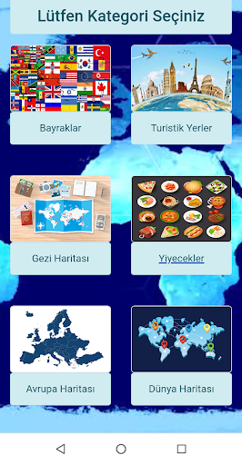 Ülkelerin bayrakları, turistik yerleri, ünlüleri, yemekleri, gezi haritaları, başkentleri, simgeleri, hangi kıtada bulundukları ve haritadaki konumları hakkında eğlenceli bilgi yarışmasıyla dünyayı yeniden keşfedin.