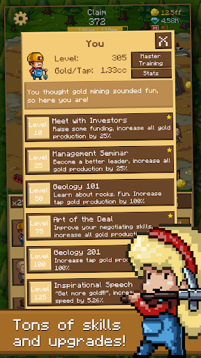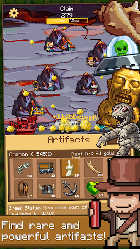You can tap to mine gold or let your workers mine for you while you idle.
