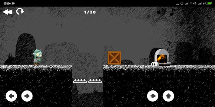 Use the bottom button to control the box and help the little zombie to go home through the obstacles