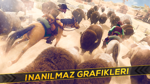 Ne zamandır bizon ayakları altında sonuna olmadan devam edebilir? Atlatmak çalıştırın ve at sırtında uçar.