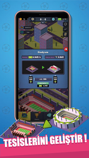 Idle Futbol Oyunu SNG kalitesi ile şimdi telefon ve tabletlerde! Ücretsiz futbol oyunu telefonuna indir ve internetsiz istediğin her yerden oyna! Kendi futbol imparatorluğunu kur, şehrini yönet. Yeni futbolcuları keşfet. Efsane Milli takım kadrosunu toplamaya çalış! Futbolcularını geliştir. Maçları kazan ve kupaları almaya çalış! Dünya kupası, şampiyonlar ligi kupası, lig kupası için mücadele et! Şehrini geliştirerek gelirini arttır. Maçları kazanarak taraftarlarını mutlu et! Takımını zirveye taşı!