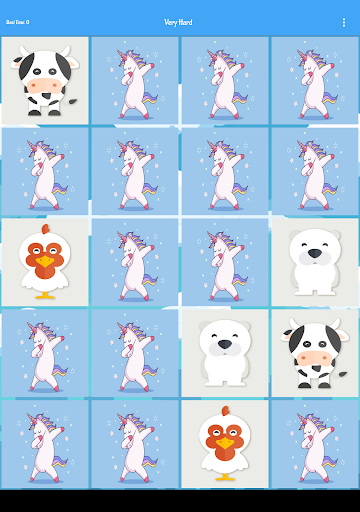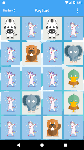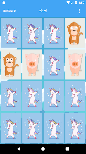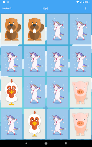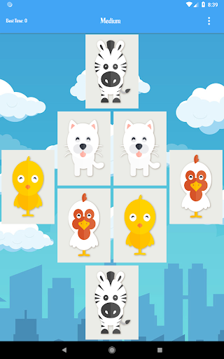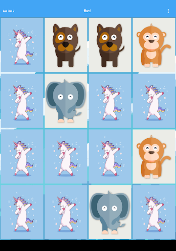 - 5 difficulties: Easy(4 animals cards), Medium(8 animals cards), Hard(16 animals cards), Very Hard(20 animals cards), Impossible(20 animals cards all cards close if you make 3 consecutive mistakes)