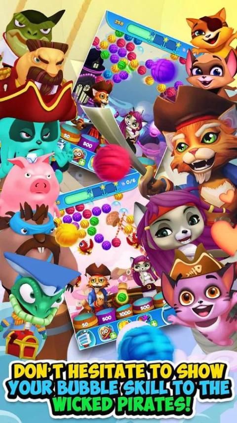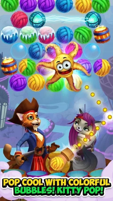 Experience a pirate world full of treasures and amazing journeys in a brand new bubble shooter; Kitty Pop : The Pirates!