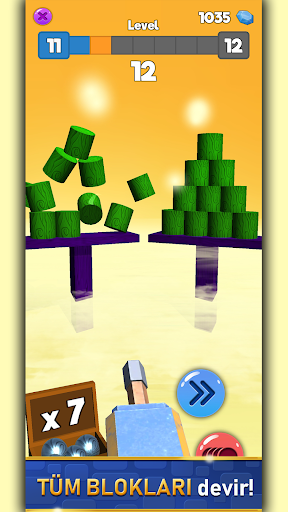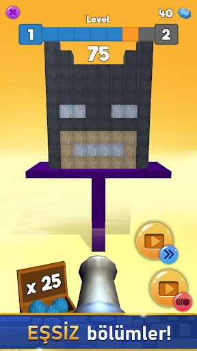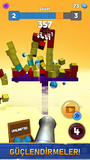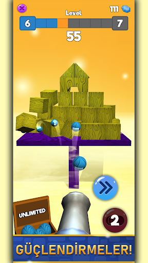 Elindeki topları fırlat ve bütün blokları devirerek bir sonraki bölüme geç! Unutma, her bölüm için sınırlı sayıda topun var, eğer takıllırsan güçlendirici kullanıp ilerlemeye devam edebilirsin!