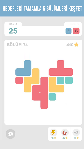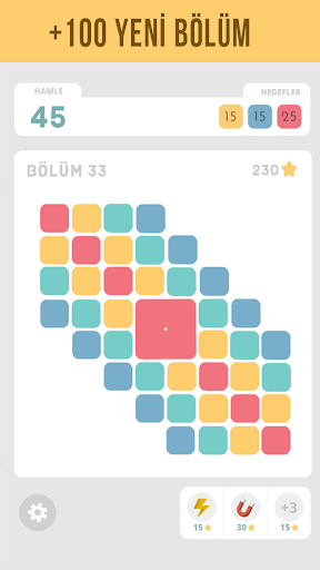 Dokunarak aynı renkteki kareleri topla, en az 3 tane olmalılar.