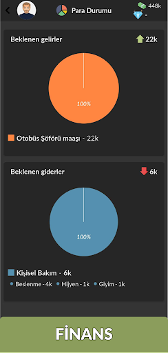 Finans durumunu yönet, harca veya tasarruf et. Senin kararın.