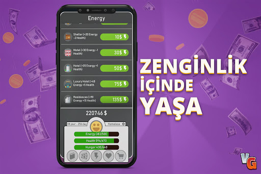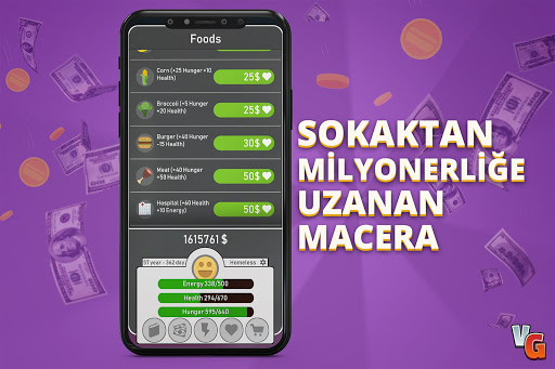 💲 Sokakta başla ve milyonerliğe ulaş. 💲 Eğitimler satın alarak kendini geliştir ve daha iyi koşullarda çalış. 💲 Paranı biriktirerek lüks evler ve yatlar alabilirsin.