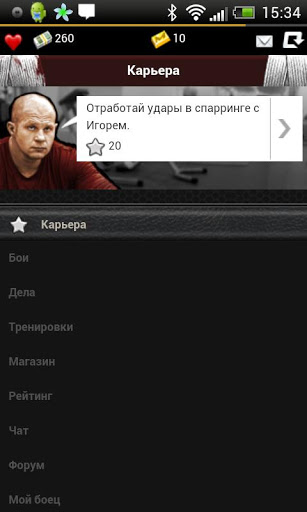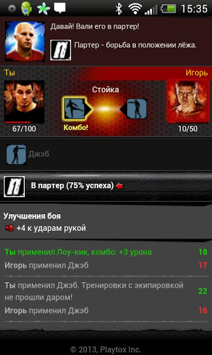 Are you dreaming of MMA championship It’s time to enter the ring and show you are the strongest fighter ever!Strong champion’s character is made of exhausting workouts and aching phalanxes and not of lazy dreaming. Daily workout on udar.mobi will make your fighting technique perfect. Fair fights to the bitter end will take you to the top of mixed martial arts. Competing in fights you’ll gain not only fame but also lots of money and useful relations. game features: - Official game created in partnership with M1 Fighter Russia and real MMA fighters including the Legend of ultimate fights Fedor Emelianenko! - Unique ways of development – grow and develop yourself, improve your skills to become a real fighter and take World Cup of Mixed Martial Arts! - Original fighting system – learn to think of your next punches in few seconds and notice your rival’s tactics at the same time.