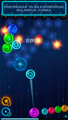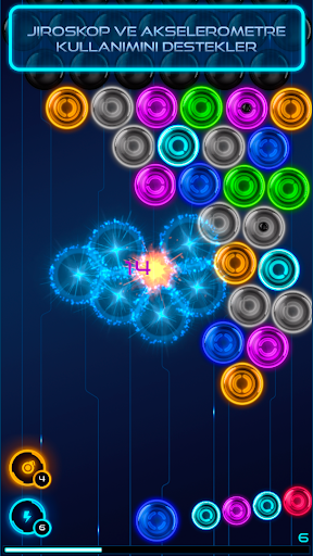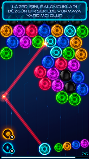 * jiroskop ile bağımlılık yaratan dinamik baloncuk vurma oyunu, baloncukları vurmak için lazerle hedef alın ve basın, bomba ve yıldırım atmak için ise kaydırın