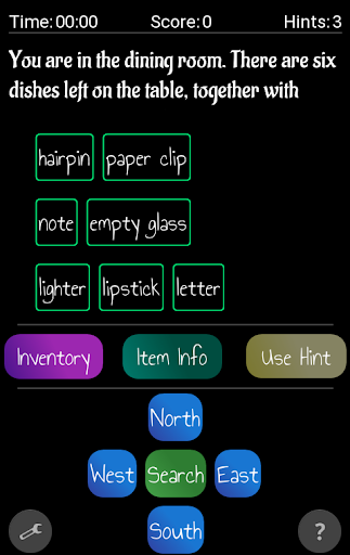 Mansion Escape is a text adventure game, in the style of the early computer-game era but updated for modern audiences. You have an hour to escape from a mansion where you have been inexplicably locked, at the same time discovering the truth behind your imprisonment. You search for clues and solve puzzles, all while the clock is ticking!