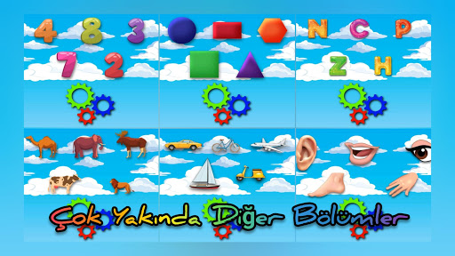 Çok yakında sayılar, hayvanlar, meslekler, eşyalar, meyveler, renkler, sebzeler, şekiller, organlar, yiyecekler ve alfabe gibi birçok bölüm eklenecektir.