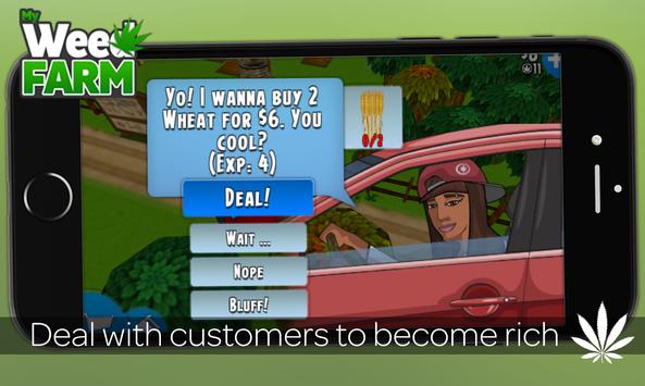 Build your very own weed farm in this relaxing simulator. Become a rich weed dealer by building and customizing your own weed farm and deal with other playing in the coffee shop. Team up, make friends and visit their farms. Join or start a clan to deal with others! Legalize your weed farm to keep the cops away!