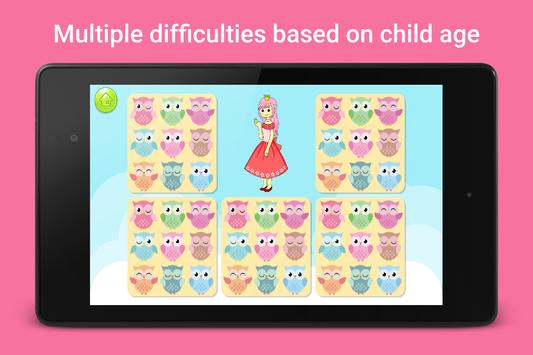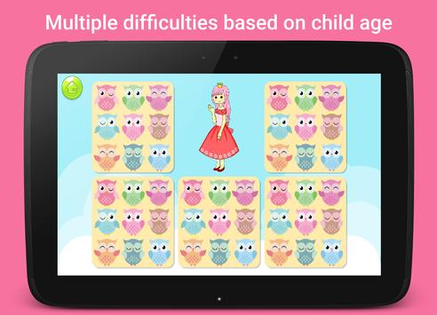 Princess Games for Girls has 24 levels in total. There are 12 puzzle games for girls and 12 memory games.
