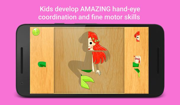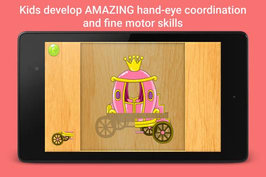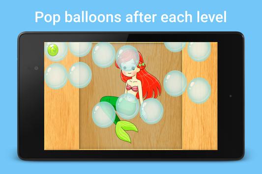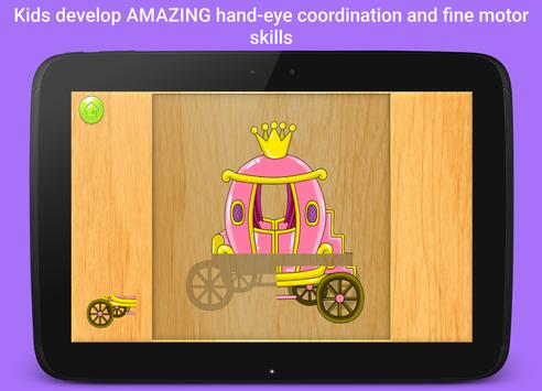 Levels: princess puzzle, mermaid puzzle, fairy puzzle, prince puzzle, unicorn puzzle, carriage puzzle, crown puzzle, shoes puzzle