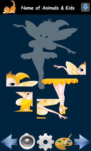 Shape Puzzle: The goal is to move shapes into the outline of an object. Once all of the puzzle pieces are in place, the object fills in with a compete image, and a voice gives some sort of encouragement, such as, "Good job!", etc.
