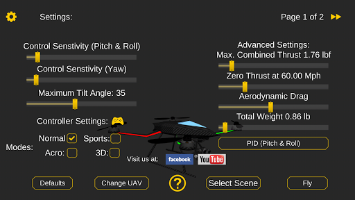 If enabled users can change the Total Weight, Static / Dynamic thrust, PID setting and Aerodynamic Drag values.