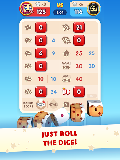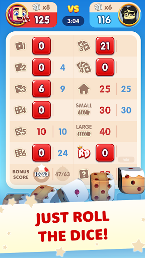 • RoyalDice'de, her dönüşü yuvarlamak için toplam 5 zarınız var 🎲.Amacınız, ücretsiz zar oyununu kazanmak için zar rulolarınızla en yüksek puanı elde etmektir.Tam bir ev, küçük düz, büyük düz, üç, dört ve beş tür alabilir misin!5 zarın hepsini aynı olmasını sağlayın ve bir telsiziniz var!