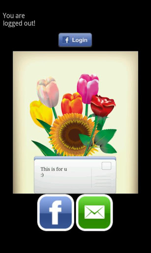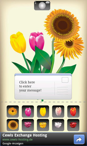 Send Flowers lets you create your own flower imageShare your flowers around the world in 3 easy steps:1 Drag an drop your flowers behind the postcard 2 Klick on the postcard to create your message3 Hit the camera button on top of the screen to send your flowers to your friendsFeatures:Supports flower send by mail, skype WhatsApp and much morefacebook post on your friends wall with your flower creation