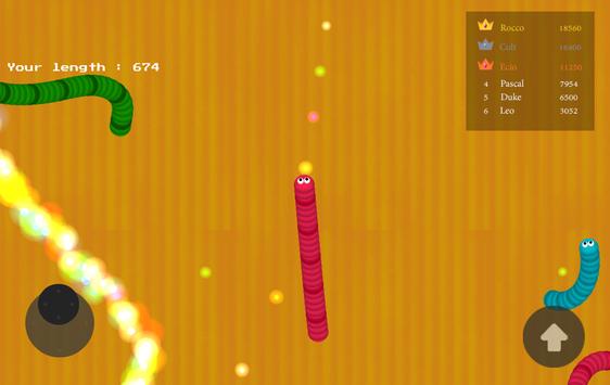 Tek bir hata, dev bir yılanın hiçbir şeye dönüşmemesini ve en küçük kaygan solucanlara karşı bile oyuna yol açmasını sağlamak için yeterlidir, bu ikincisine çaba sarf etmeden daha güçlü ve daha hızlı olma şansı verir. Samanyolu boyunca aydınlık yıldızlara ve gezegenlere odaklanın, onları çevrelerde yakalayacak kadar büyük olmadıkça diğerlerini unutun. Ölmeden kendi kuyruğunuzla yol geçmenin mümkün olduğunu unutmayın. Sen küçük bir yılansın, diğer yılanlar vs blok daha da uzayacak yiyecek bulmak için etrafta sürünüyor. Solucanlarınız joystick düğmesi kullanılarak tamamen kontrol edildiğinden, Slither snake off'da doyumsuz olduğunuzu kontrol etmek basittir.