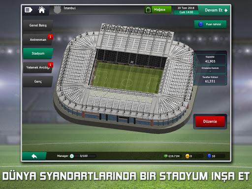 Takımınızı saha içinde ve saha dışında kurunuz. Yeni yıldız oyuncuları takip ediniz, oyuncularınızın en iyi olmaları için onları destekleyin ve yeni ve geliştirilmiş tesislerle geleceğin yeteneklerini eğitin.